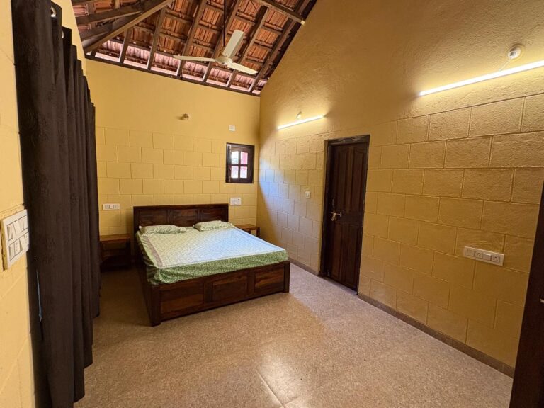 Our farm unit is equipped with basic amenities to ensure a comfortable stay, including a comfortable bed, a bathroom complete with complimentary vegetarian meals throughout the day.